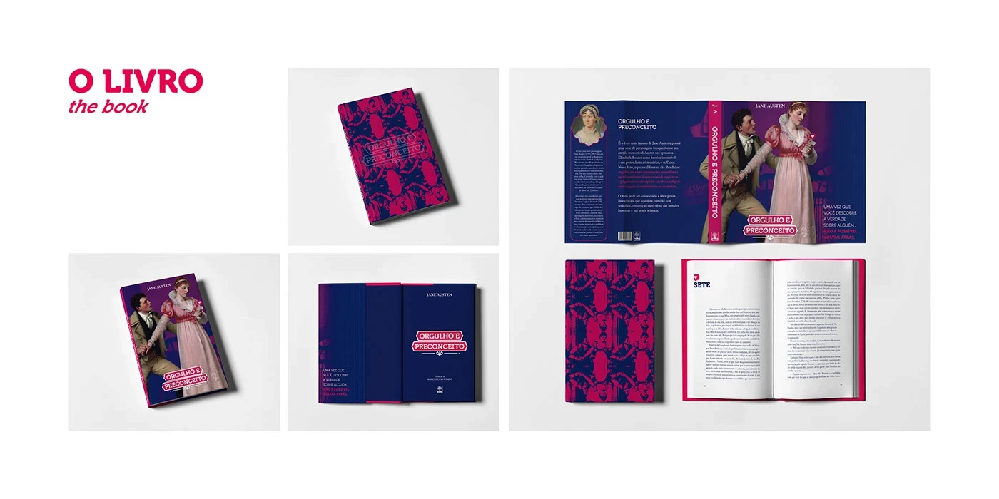 This academic project, developed during the sixth semester of my Graphic Design degree, aimed to reimagine the visual identity of the classic novel Pride and Prejudice. The challenge was to modernize its graphic language while respecting the essence of the original work. In addition to the new identity, I created complementary pieces and packaging that expanded the book’s presence into different formats.